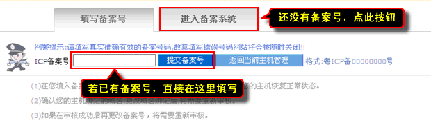 还没有备案号,则“进入备案系统